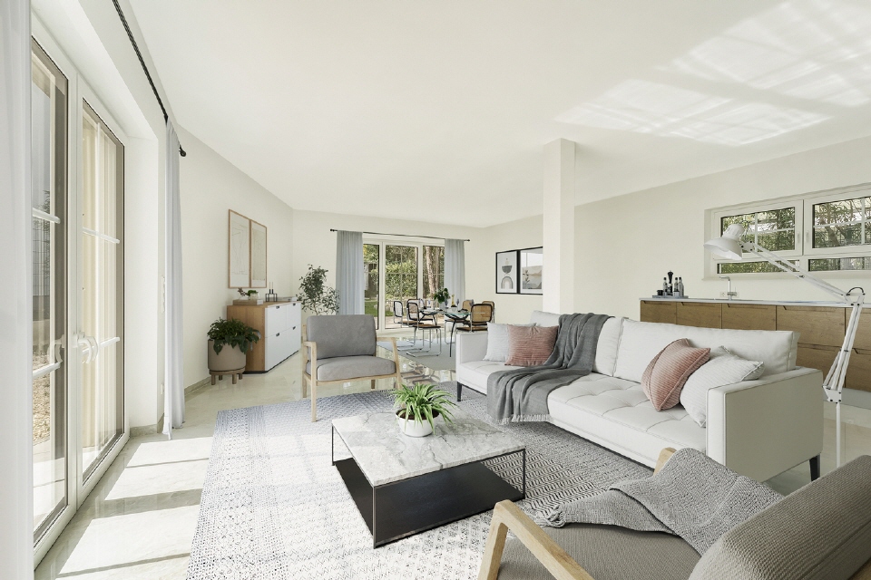 Ergänzend dazu kommen noch die Südwest ausgerichteten grosse Sonnenterrassen und Balkone hinzu die eine “natürliche” Erweiterung des Wohnraums ermöglichen. Die ruhige Lage des Grundstücks komplettiert die Möglichkeit vom idyllischen Wohnen.