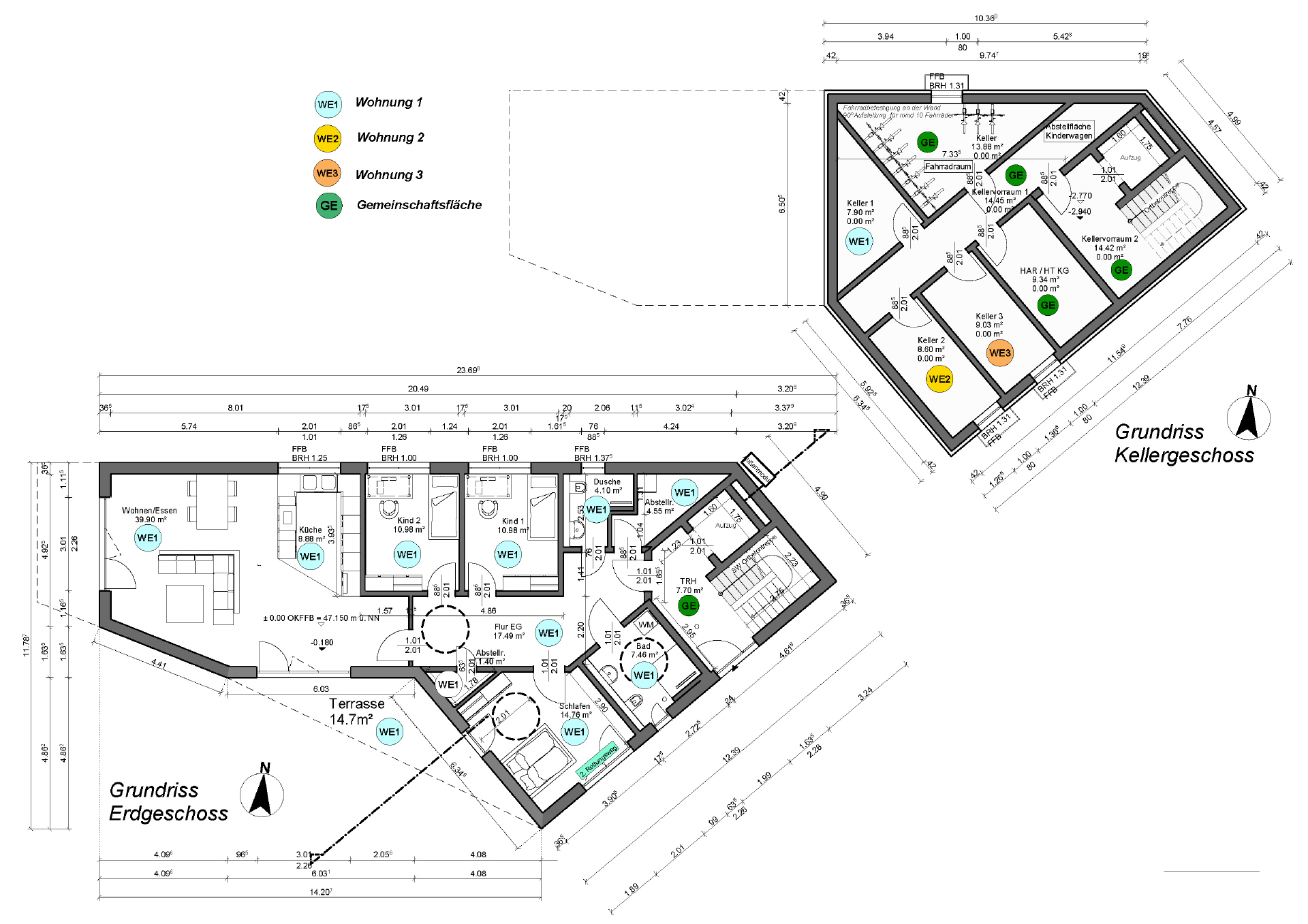 | Terasse 1 | 8,42 qm | 7,75 qm | 22,50 qm |